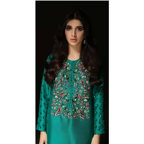 Front On Raw Silk Fabric With Work Of Embroidery And HandEmbelished Work